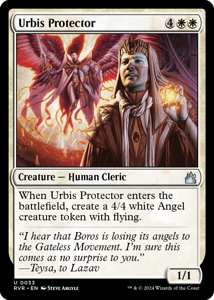 Flavor: "I hear that Boros is losing its angels to the Gateless Movement. I'm sure this comes as no surprise to you."